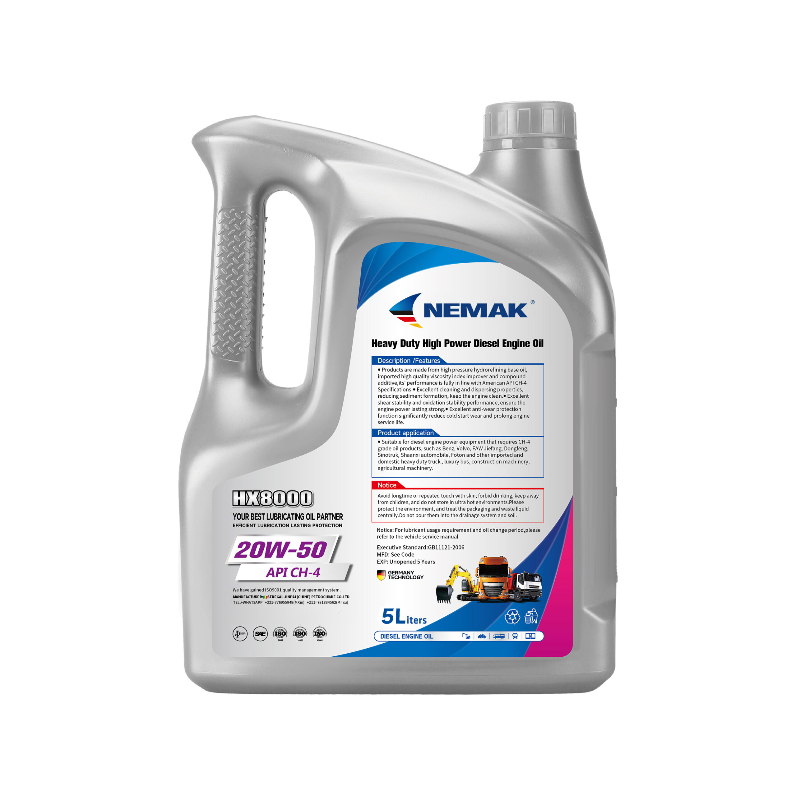 | Emballage | 4L, 5L, 20L, 205L | Catégorie | Huile moteur diésel |
