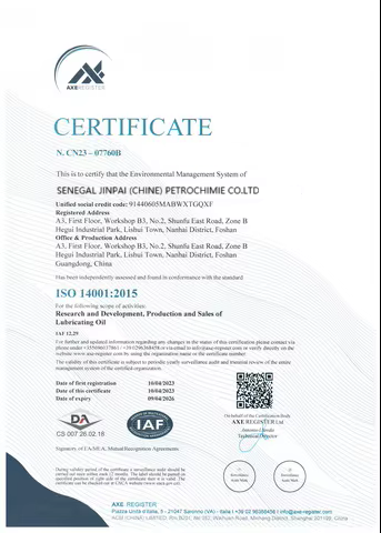 SENEGAL JINPAI (CHINE) PETROCHIMIE CO.LTD est une entreprise spécialisée dans le mélange d’huiles lubrifiantes, renforcée par l’avantage de la synergie technologique sino-sénégalaise. Firme bien implantée sur le marché ouest-africain, elle centrera ses activités sur le concept clé de « procédé précis + adaptation locale », et fournira des solutions de lubrification à haute fiabilité pour les secteurs du transport commercial, des machines de construction et de la fabrication industrielle. Elle constitue un pont clé entre la technologie pétrochimique chinoise et les besoins spécifiques des conditions de fonctionnement locales en Afrique de l’Ouest.